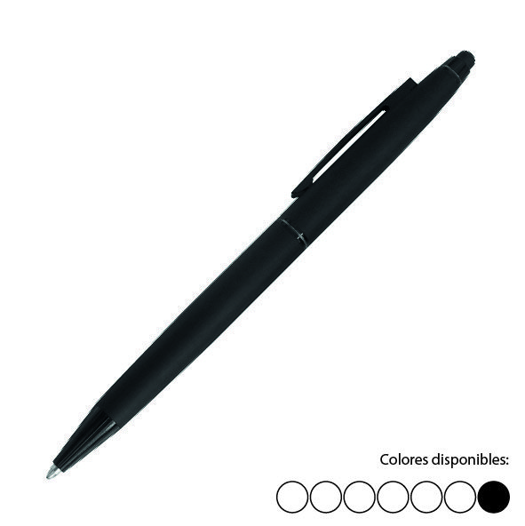 Bolígrafo touch con apertura giratoria. Destape acero en la parte superior. Cuerpo color negro mate. Puntera y clip color negro brilloso. Presentación en caja de regalo.
