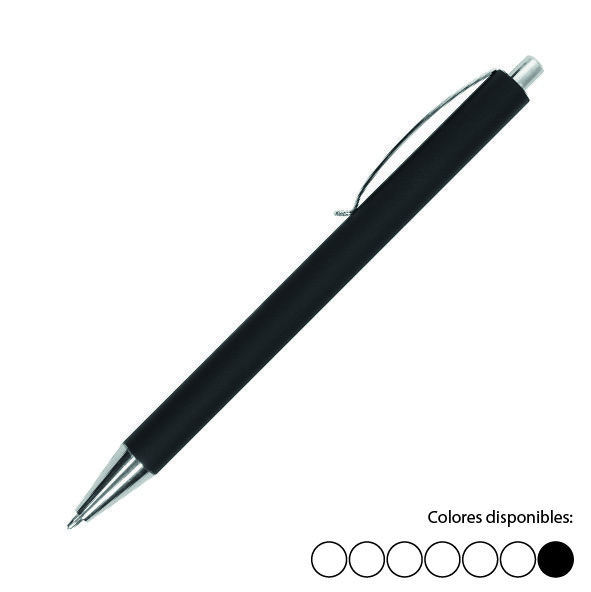 Cuerpo color negro. Pulsador, clip y punta plata. Decape plateado