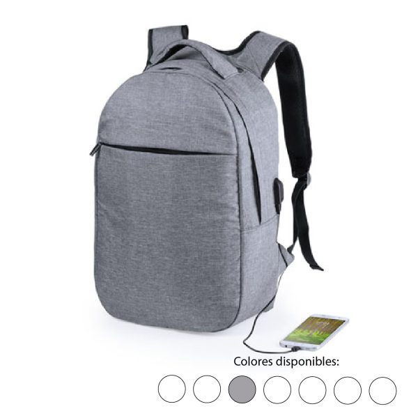 Mochila de seguridad, con diseño urbano en resistente. Bolsillo interior con protección de seguridad RFID (Identificación por Radio Frecuencia) que mantiene seguros los datos de la tarjeta y demás dispositivos. Compartimento principal con elegante tapeta en la cremallera. Con conexión USB -powerbank no incluido- y bolsillo interior acolchado para ordenador portátil de hasta 15 pulgadas. Parte trasera y cintas acolchadas. Bolsillo Protector RFID. Conexión USB. Parte Trasera y Cintas Acolchadas
